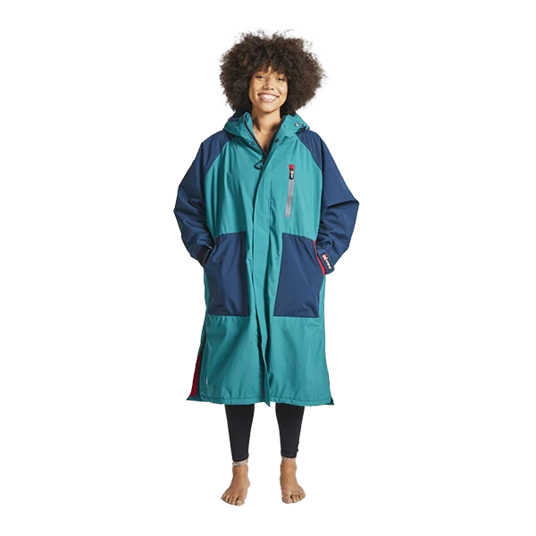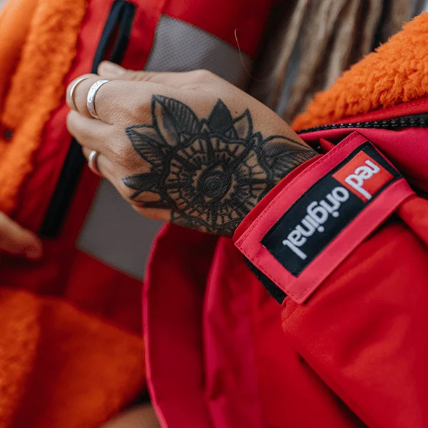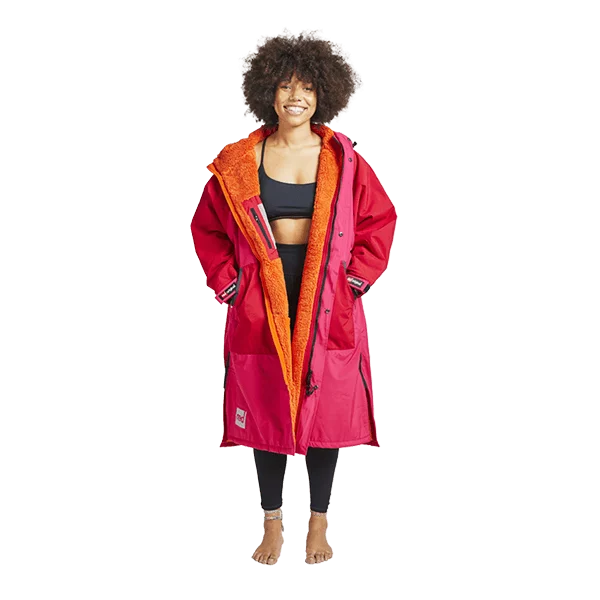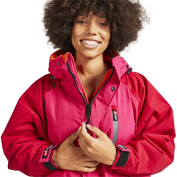 Der schicke limitierte Wintermantel Pro Change Robe EVO von Red Original bietet Schutz vor Wind, Regen und Kälte für Outdoor-Sportlerinnen. Er ist wasserdicht und ermöglicht, einen Neoprenanzug anzuziehen, ohne sich in der Kälte ausziehen zu müssen, dank einzigartiger Stretcheinsätze und weiter Passform.